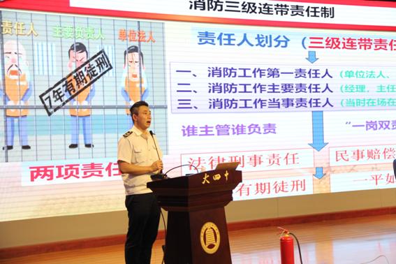 时不时我们都会因划破长空的消防车警笛而紧张,随着城镇化进程的加快,人口的聚居,气温的攀升,火灾隐患时刻威胁着我们的生命和财产安全,据统计全重庆市每天平均就会发生火灾15起。为了增强消防安全意识,2018年4月19日下午4点半,利民消防中心郑教官送教到大学城四中,给全校教职工进行了一次切实有效的消防安全培训。