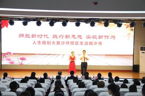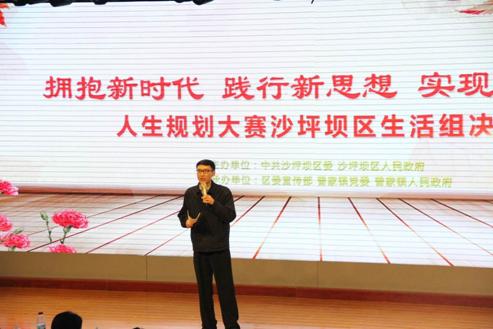 2018年6月8日下午,为深入学习宣传贯彻党的十九大精神、2018年全国“两会”精神和市委五届三次、四次全会精神,深学笃用习近平新时代中国特色社会主义思想,沙坪坝区“拥抱新时代 践行新思想 实现新作为”人生规划大赛沙坪坝区生活规划组决赛在大四中隆重举行。来自市委宣传部宣教处副处长卞明高、西南政法大学学生处副处长胡晓,以及区委宣传部、区文明办、区教委等单位相关领导及选手亲友团,共计300余人参加。