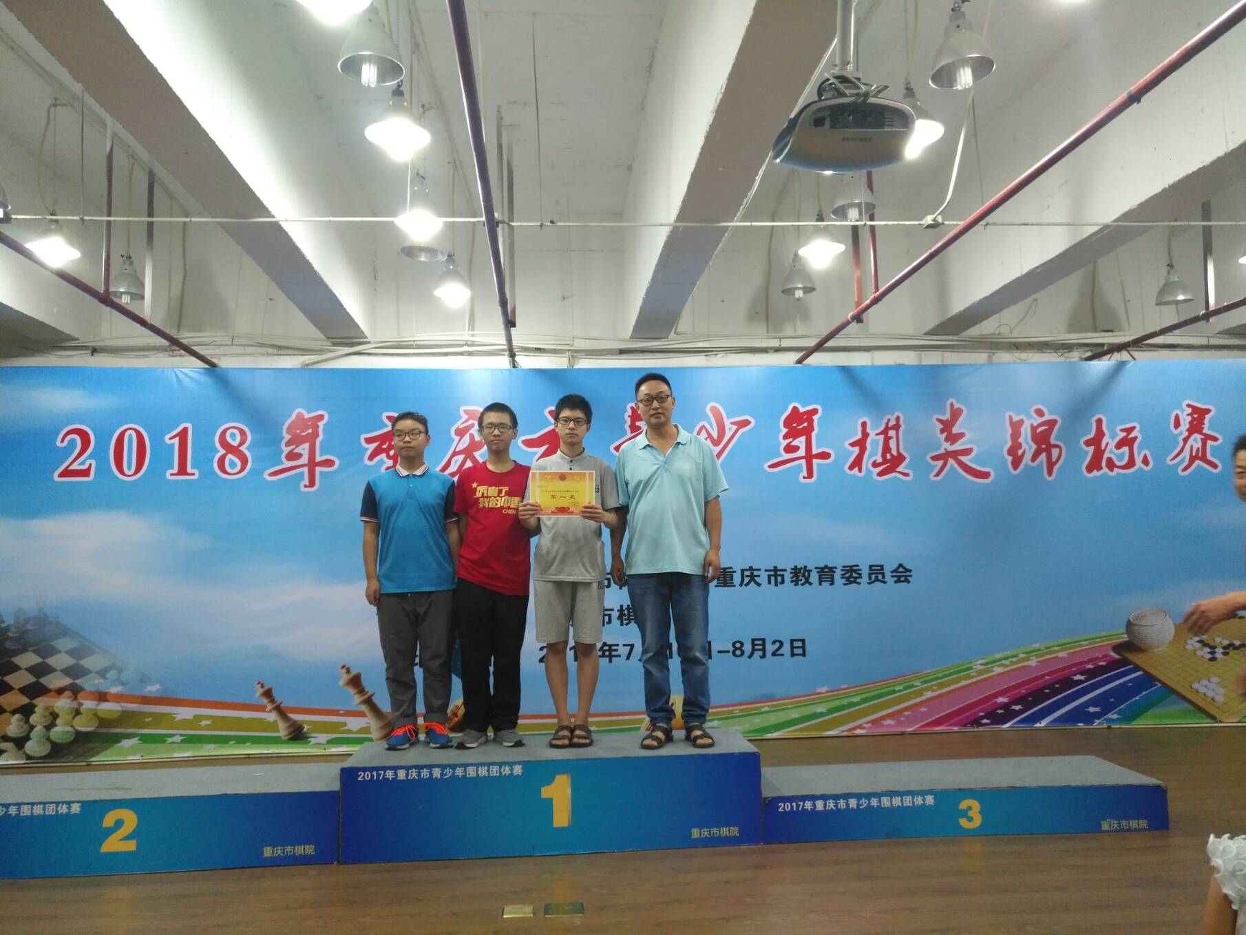 在2018年重庆市青少年象棋锦标赛中,重庆大学城第四中学分别获得14岁组男团第四名,14岁组女团第二名,16岁组男团第一名的佳绩。个人进入全市前8名的是2019级1班的孙洪名、2020级3班的徐豪、2018级1班的李闻杰。