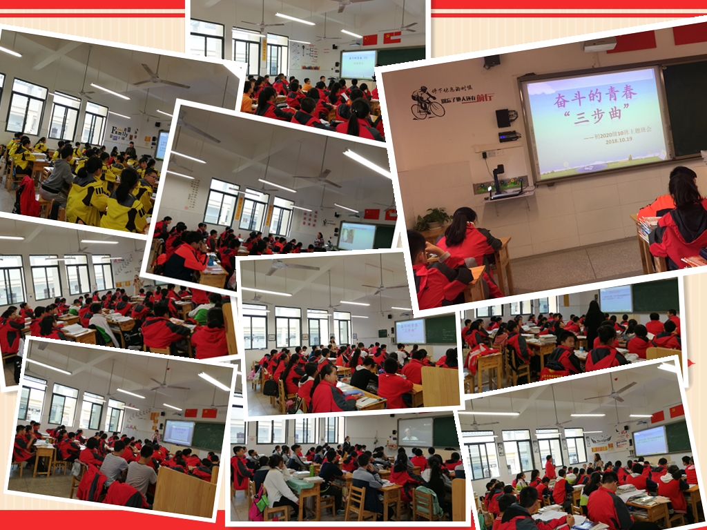 2018年10月19日下午,初2020级各班级进行了“奋斗的青春三步曲”的主题班会。