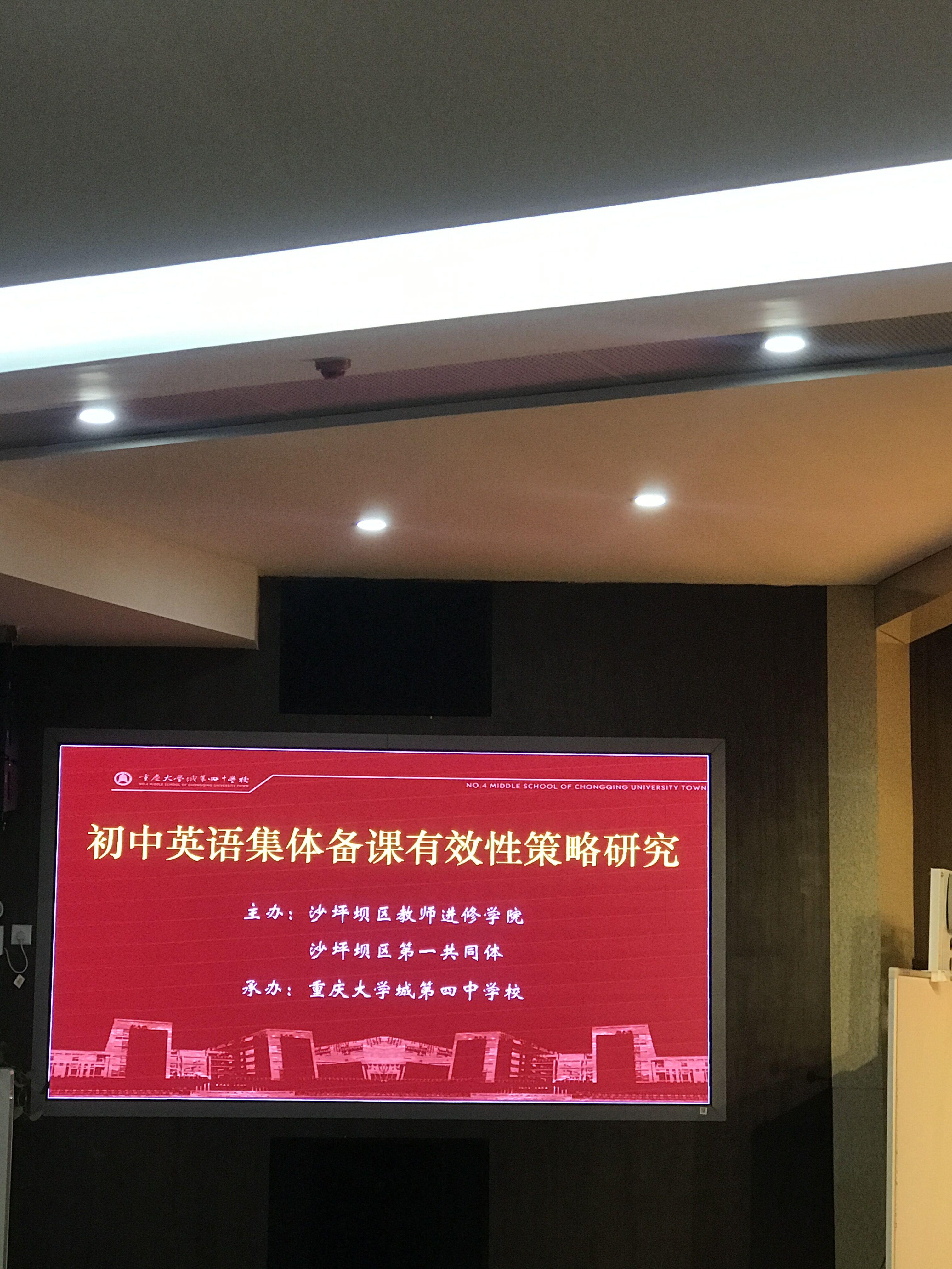 初冬时节,小雨纷飞,冷空气也伴随着寒流悄然而至,温度骤然下降,但是老师们学习教研的热情并未减退。由沙坪坝区教师进修学院、沙坪坝区第一共同体主办,重庆大学城第四中学校承办的沙坪坝区初中英语集体备课有效性研究的教研活动在我校隆重举行。