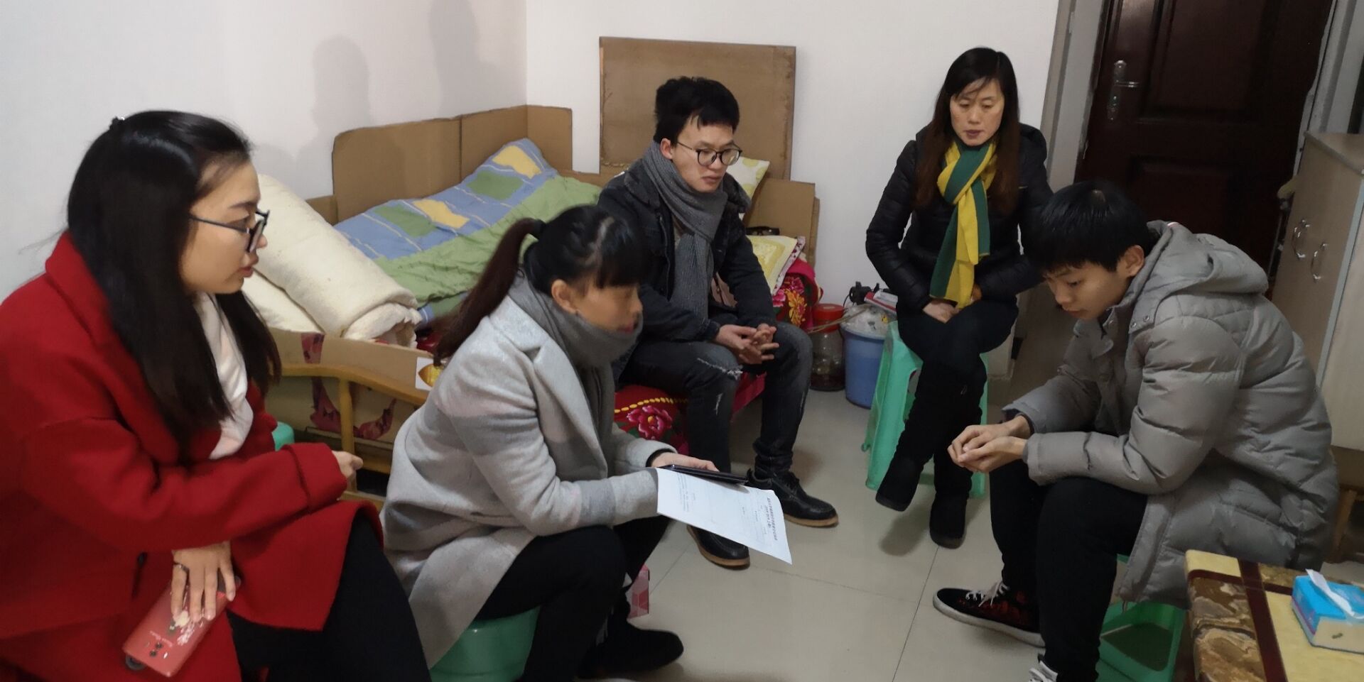 老师们详细了解了学生家中生活情况,并和他们做了倾心交谈,鼓励孩子在家中要主动承担一些力所能及的家务劳动,学会自我管理,合理安排自己的学习与生活。告诉他们,要树立起战胜困难的信心,我们目前最重要的任务是学习。相信有大家的关心和帮助,一定会度过目前暂时的困难,并祝愿同学们温暖过冬,快乐童年。