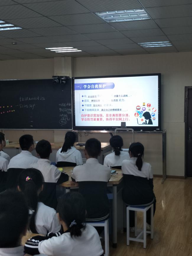 其后,我们又紧接着听了一节由祝老师带来的思想政治课:享受健康的网络交往。一上课,祝老师就以她强大的气场吸引全场,所有学生和听课老师都被迅速带入到了她的网络武林大赛中,跟着她开启了一场召集网络安全达人的比赛。整堂课,氛围活跃,活动丰富有趣又紧扣教学目标,学生通过观看视频、分享交流,小组表演等多种形式,认识了网上的多种不良信息和网络骗局,提高了网络安全意识,并学会了如何正确处理网上的不良信息和网络交往等问题。祝老师扎实的教学基本功,独特的教学风格和学生活跃的思维,精彩的表现,无不让听课老师印象深刻,赞不绝口。
