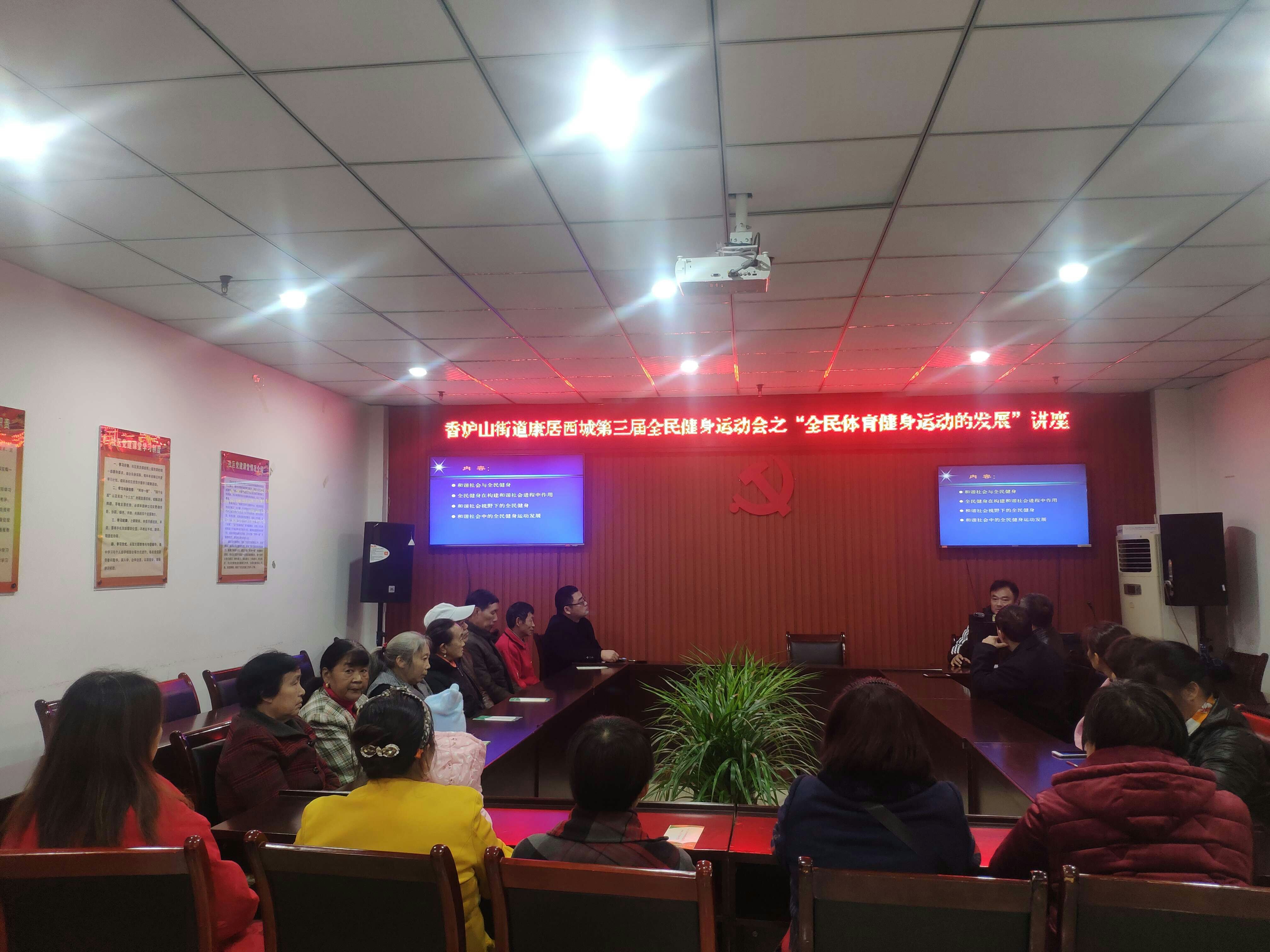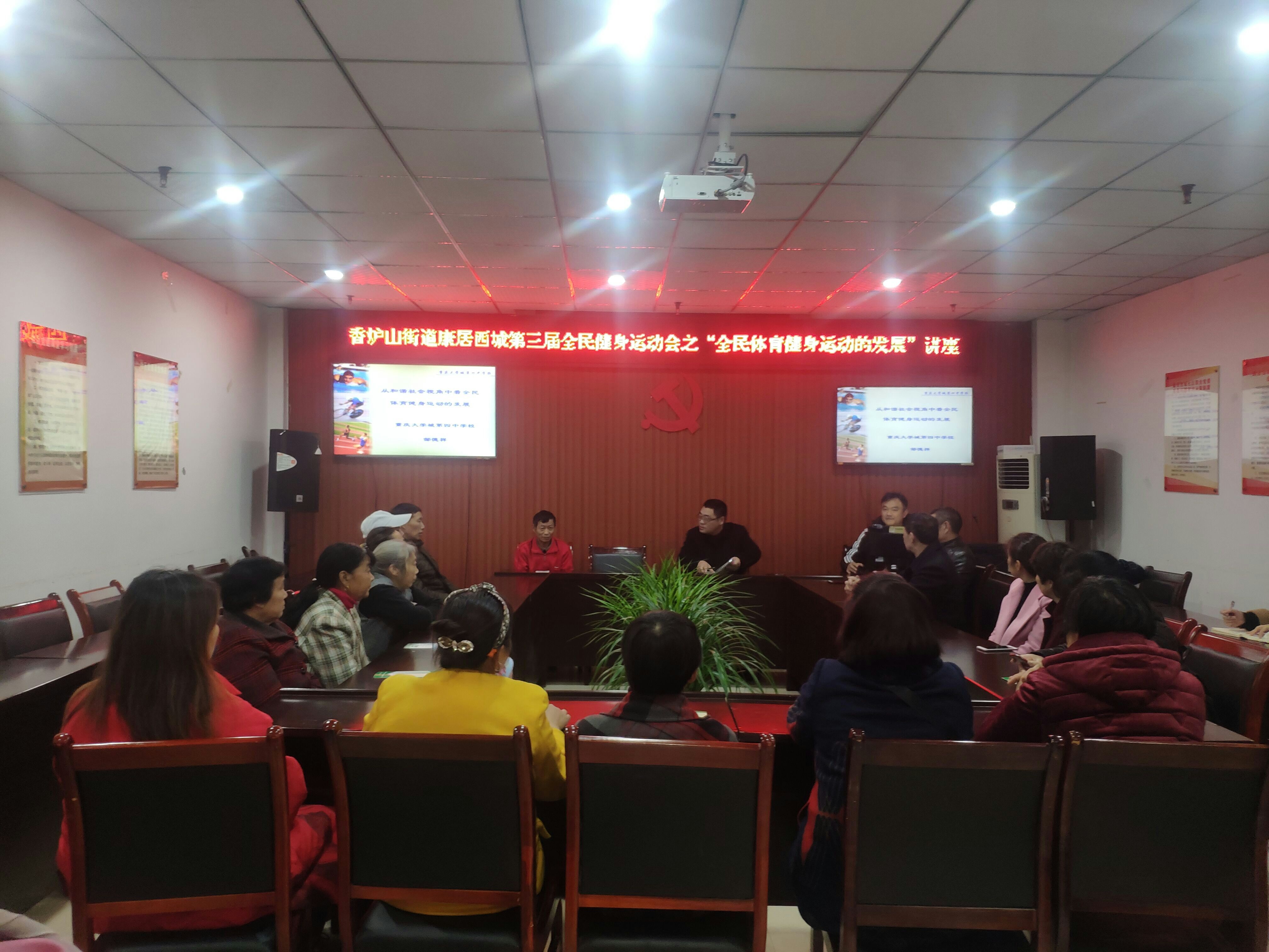 11月21日,应康居西城公租房社区邀请,我校安排国家级体育指导员邹德祥老师到第三社区多功能活动室,做了一次体育健身知识讲座,为康居西城30余位社区居民进行了科学健身的讲解和指导。