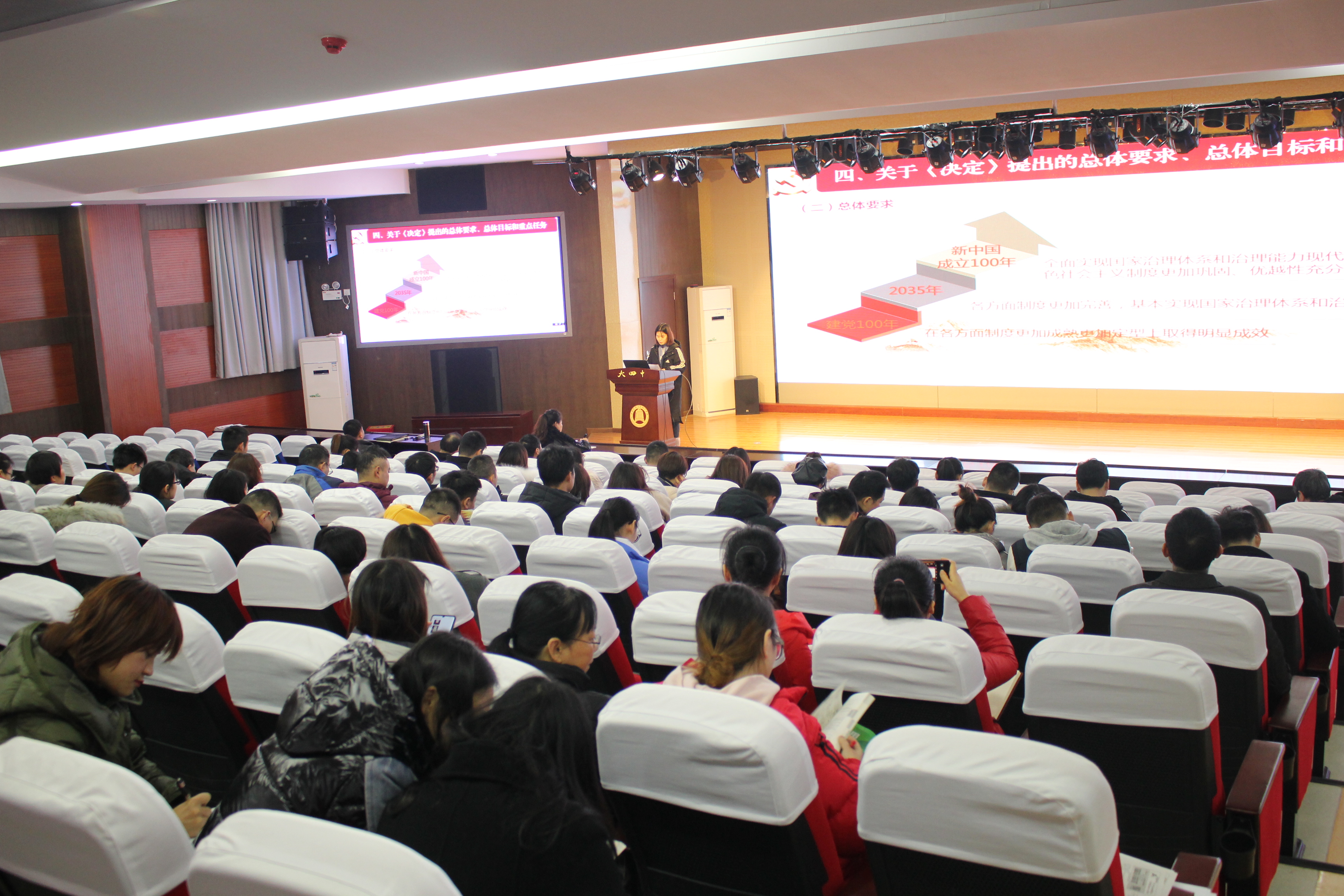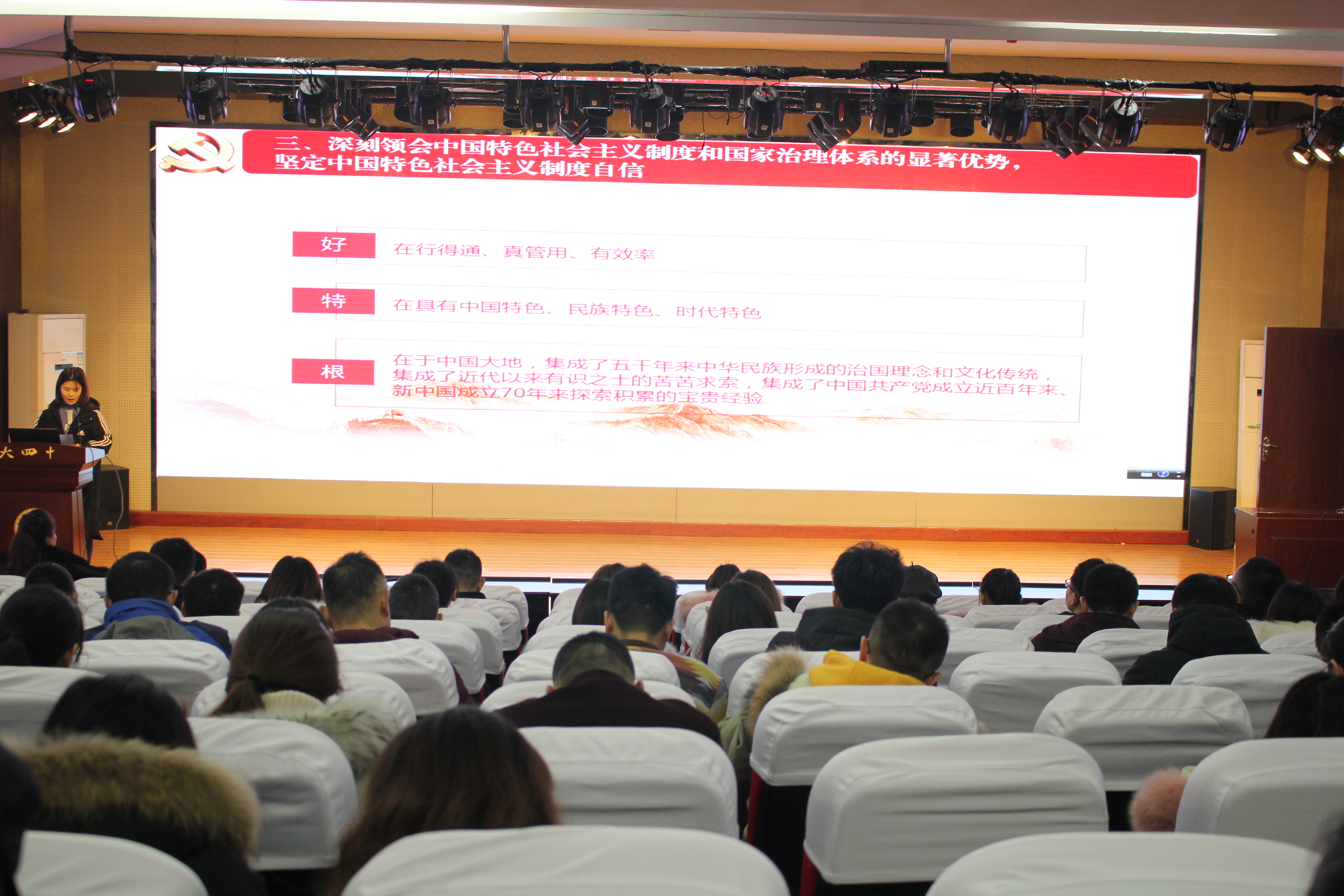为深入学习宣传贯彻党的十九届四中全会精神,引导全体教师把思想和行动统一到党的十九届四中全会精神上来,1月6日,我校廖馨老师向全体教师宣讲了党的十九届四中全会精神。