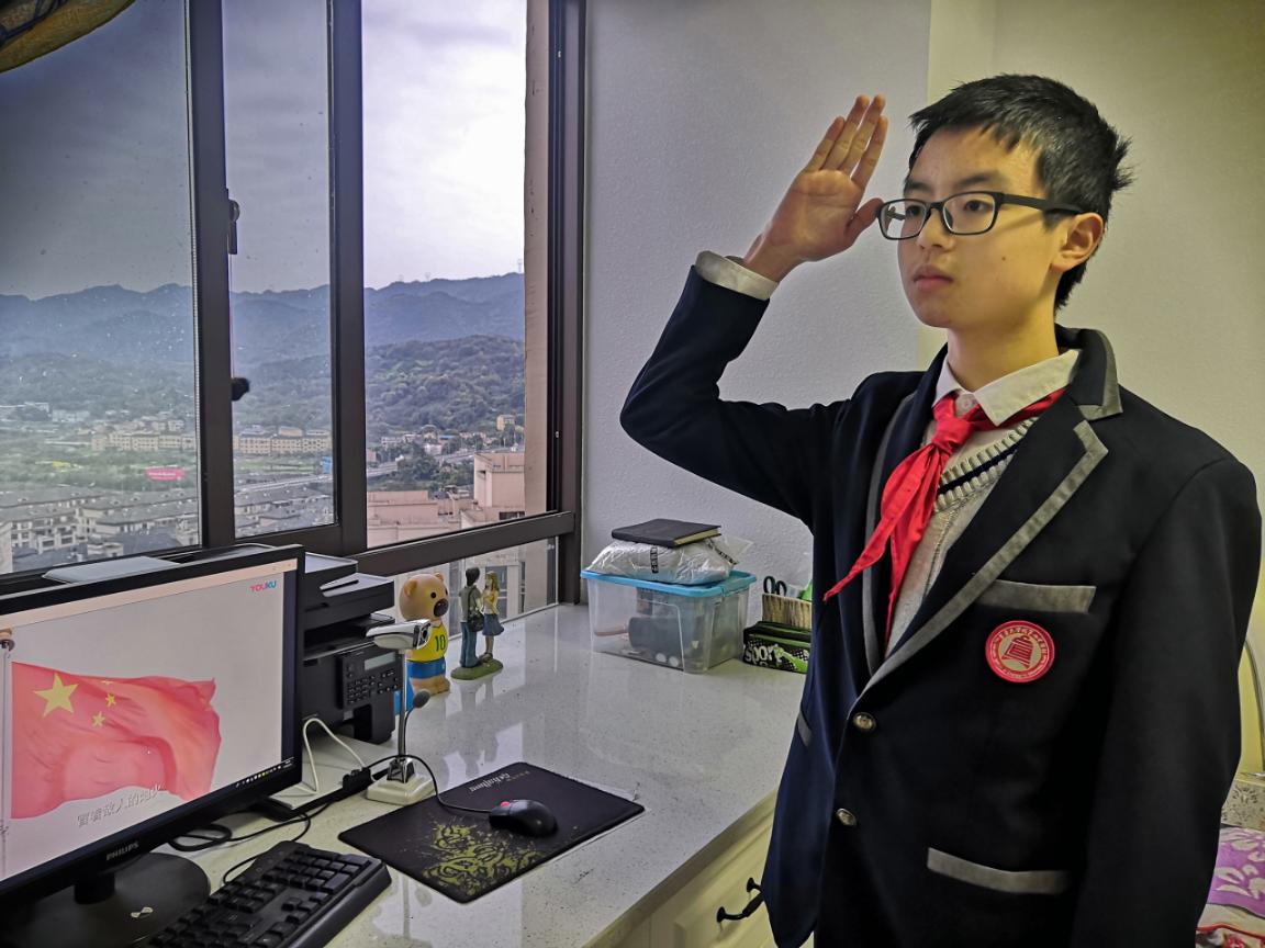 3月9日周一,重庆大学城第四中学校立足实际,采用灵活多样的方式举行了线上升旗仪式。疫情当前,师生虽无法返校,但学校强化师生思想政治教育的任务一刻也不曾松懈。