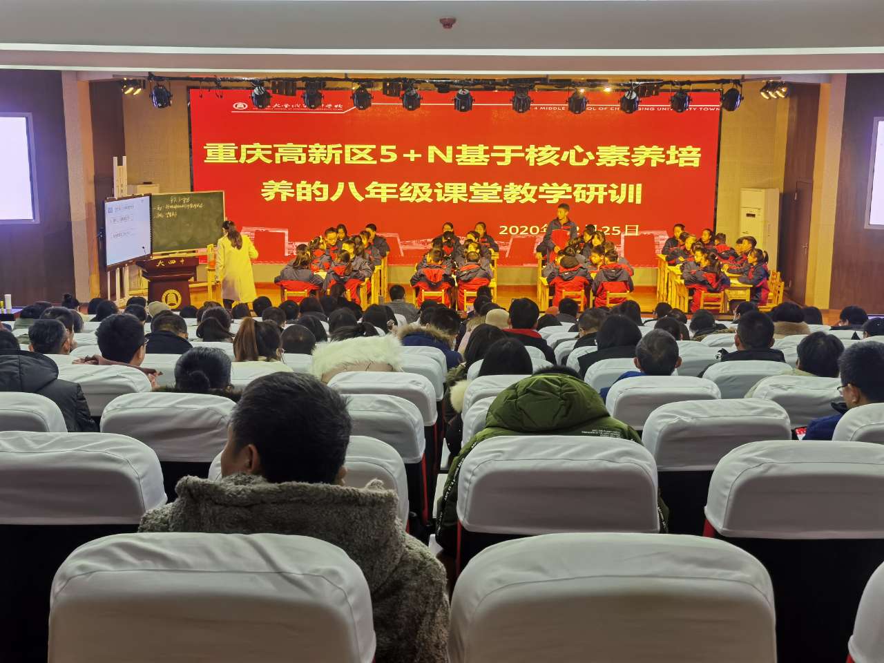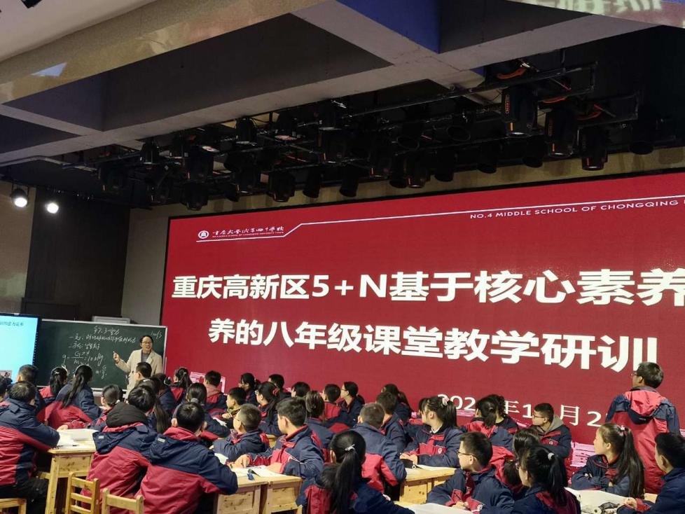 2020年12月25日,“重庆市九龙坡区、高新区物理学科核心素养培养的八年级课堂教学研训活动”在重庆大学城第四中学校多功能厅开展,这次活动给我校提供了和九龙坡、高新区的兄弟学校学习、交流的机会,使我校的物理教研工作有力的推动和促进。九龙坡区物理教研员王绍刚老师主持,大四中张长良校长、徐梅副校长全程参与本次教研活动。
