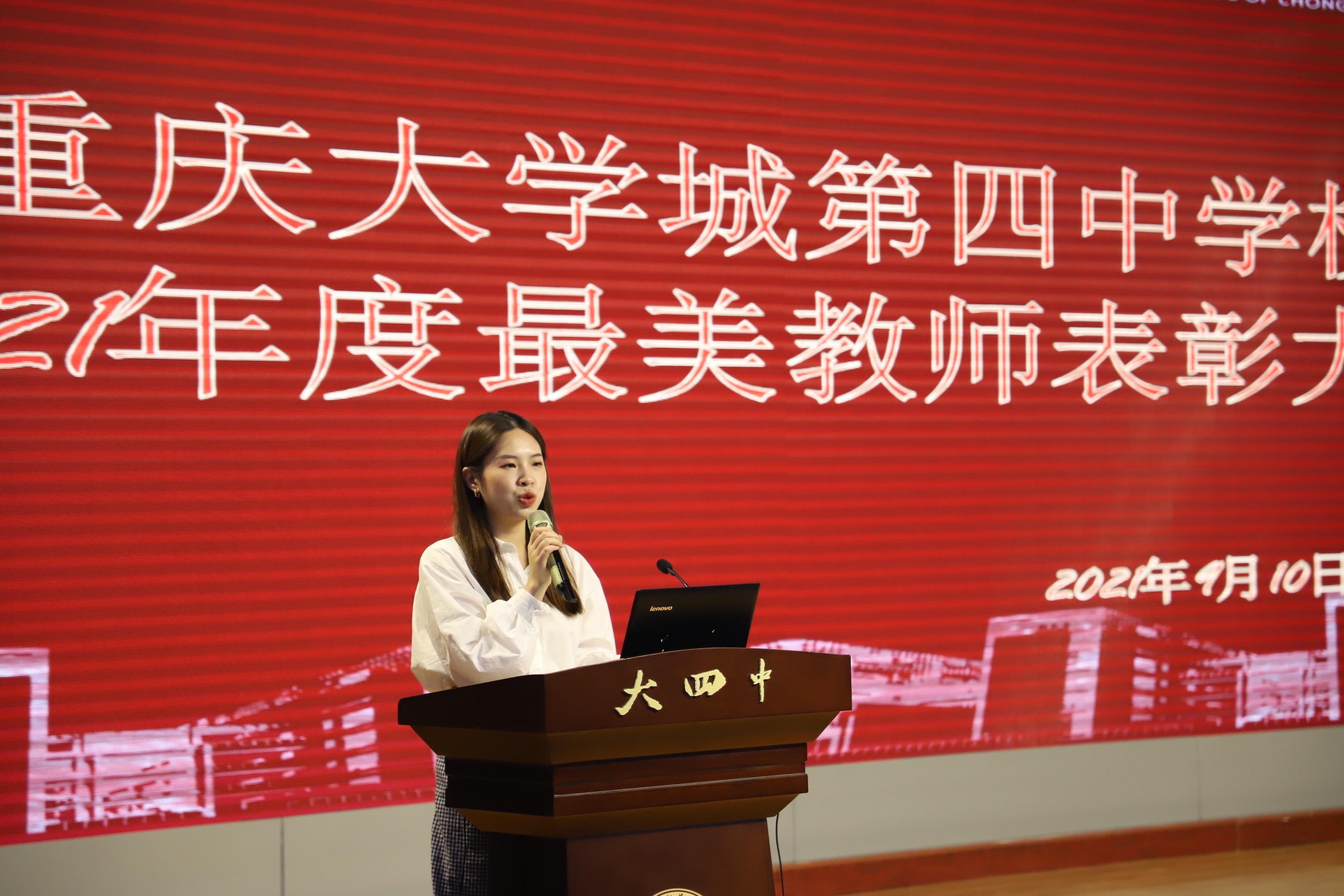 2021年9月10日下午五点,重庆大学城第四中学校在求真楼多功能厅隆重召开了2021年度最美教师表彰大会。