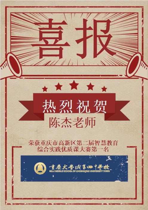 爱岗敬业,乐于奉献, 曾获高新区赛课一等奖,重庆市教学技能大赛特等奖、一等奖等;曾带队参加重庆市物理竞赛,多次获得市区级奖;曾任魔方教练,多次带队获得沙坪坝智力运动会一等奖等。路漫漫其修远兮,吾将上下而求索。