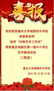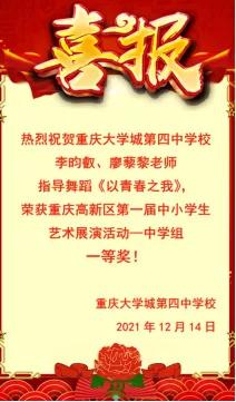近日,大四中学子在重庆高新区第一届中小学生艺术展演活动中,经过激烈角逐、精彩演绎,终获佳绩。