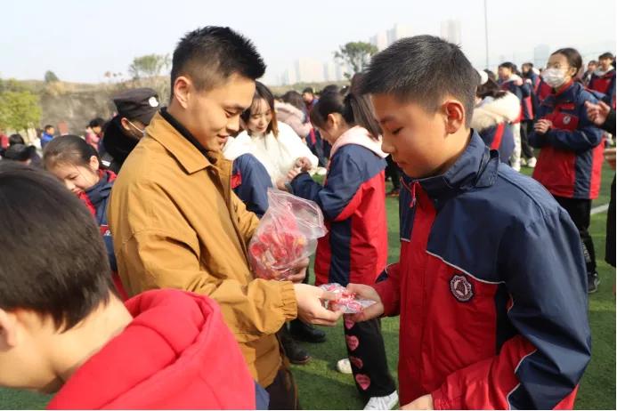 学生是学校的主人翁,学生是学校的关注焦点。值此元旦佳节,我校为每一位学生准备了新年礼物,并由老师们亲手送发到学生手里。礼轻情意重,可爱的学生们都口口称赞:爱了!爱了!