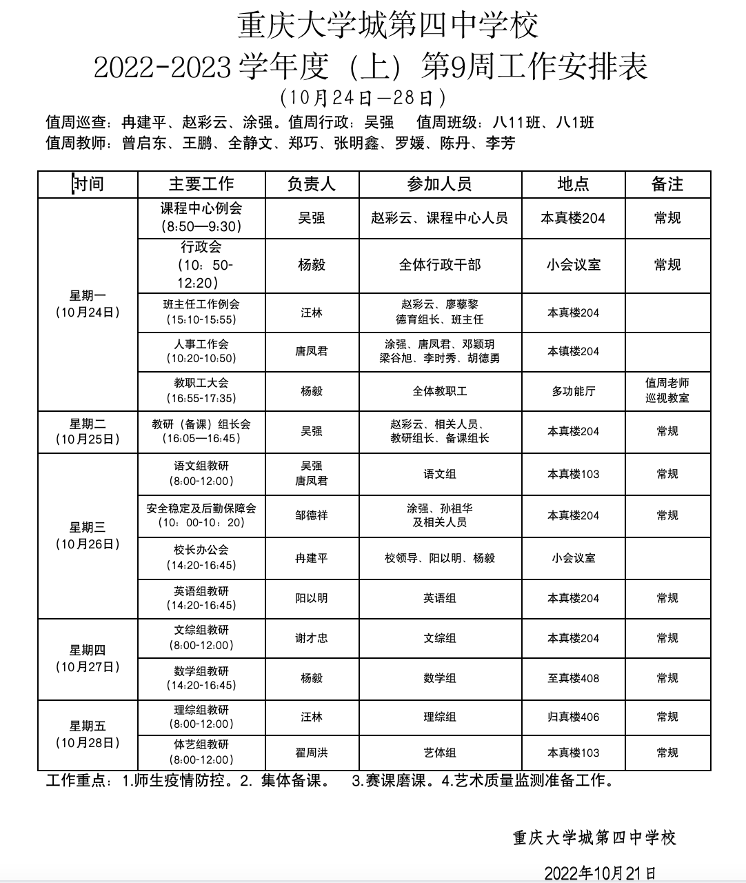 第9周工作安排