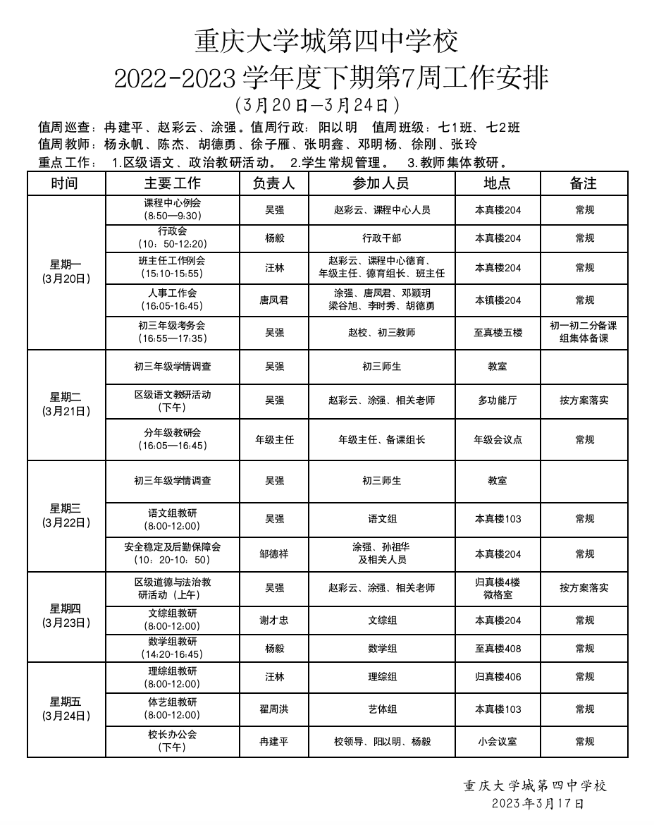第7周工作安排